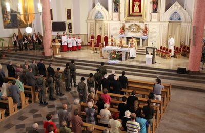 O godz. 17.00 rozpoczęła się Eucharystia pod przewodnictwem ks. Prałata Stanisława Tofila, proboszcza parafii, którą także koncelebrowali: ks. płk w st. spocz. Tadeusz Pałuska oraz ks. wikariusz Piotr Jaroszkiewicz, który wygłosił homilię.