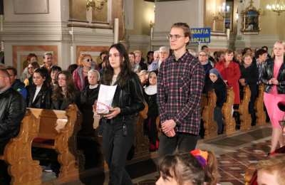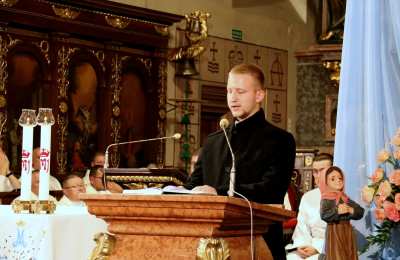 Zaznaczył, że rodzina była pierwszym i najważniejszym miejscem katechezy i religijnego wychowania. - W domu rodzinnym uczyliśmy się pierwszych modlitw. Gdy przekroczyliśmy pierwszy raz próg kościoła nie były nam obce modlitwy, które odmawiała cała wspólnota, bo wcześniej tych modlitw nauczyli nas rodzice w domu. Na lekcjach religii nie były nam obce pewne sceny biblijne, bo wcześniej nasi rodzice i dziadkowie czytali nam Pismo Święte, opowiadali historię biblijną. Nie były nam obce pieśni religijne śpiewane w kościele, bo z tymi pieśniami spędzaliśmy długie zimowe wieczory w naszych domach – podkreślał celebrans.