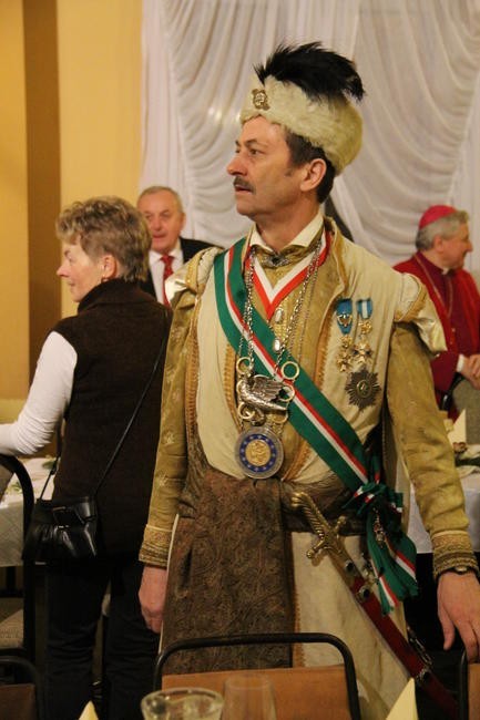 ...to przedstawiciele Strzeleckich Bractw Kurkowych z terenu diecezji kaliskiej zgromadzili sie na wspólnym świętowaniu. Miejscem spotkania była parafia Niepokalanego Serca NMP w Roszkach, w dekanacie raszkowskim, której gospodarzem jest ks. Maciej Dudek. Członkowie Zjednoczenia Strzeleckich Bractw Kurkowych licznie stawili się najpierw na Eucharystii sprawowanej przez Księdza Biskupa Edwarda Janiaka w kościele parafialnym, a potem, po uroczystym przemarszu, na spotkaniu w Sali Wiejskiej. Były salwy armatnie, powitania i pozdrowienia, nie obyło się bez upomników dla Biskupa Ordynariusza. Po słowie, które Ksiądz Biskup skierował do zebranych, nastąpiło poświęcenie opłatków i wzajemne nimi się łamanie. Kolędowanie, wspólny posiłek i wiele radości towarzyszyło dalszej części spotkania.