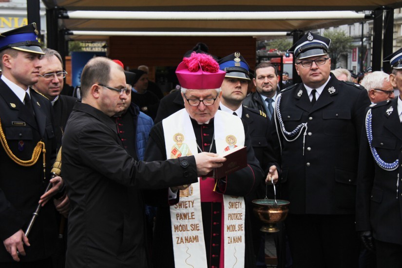 ... który przewodniczył Mszy św. w kościele pw. św. Apostołów Piotra i Pawła w Krotoszynie z okazji wojewódzkich obchodów Dnia Strażaka. Po Eucharystii biskup poświęcił na rynku 41 nowych wozów strażackich.