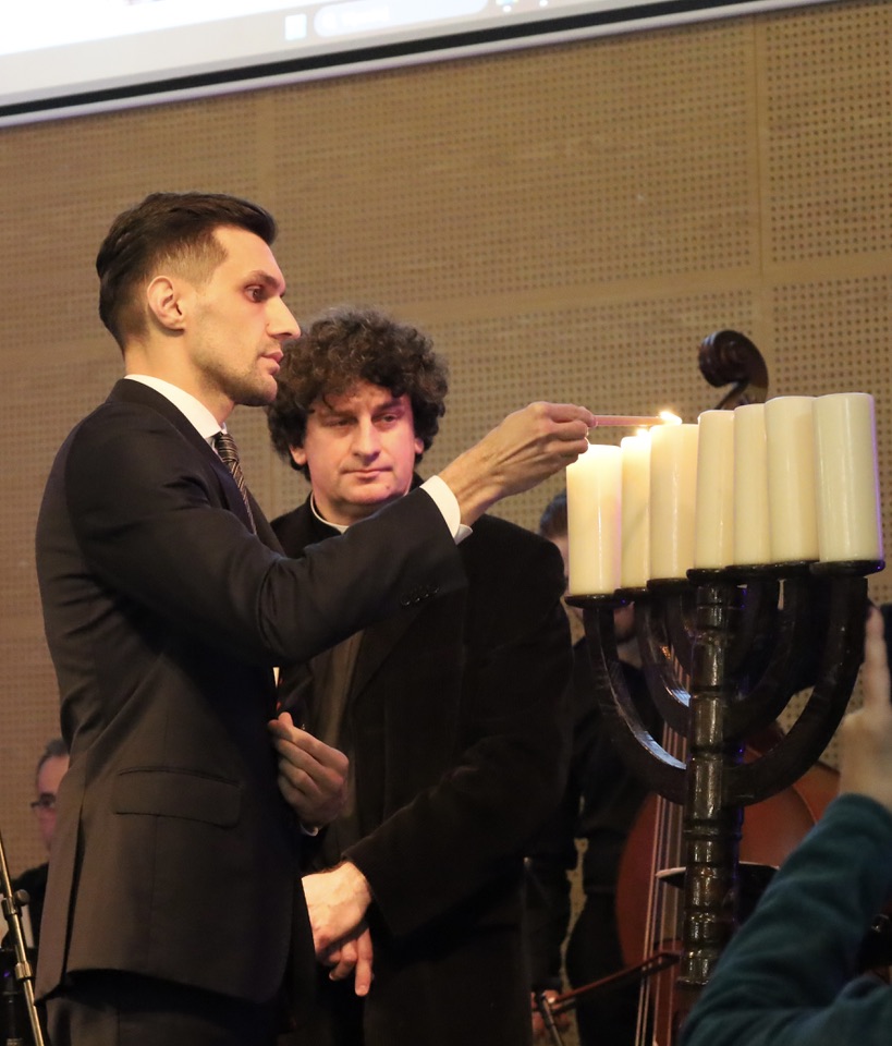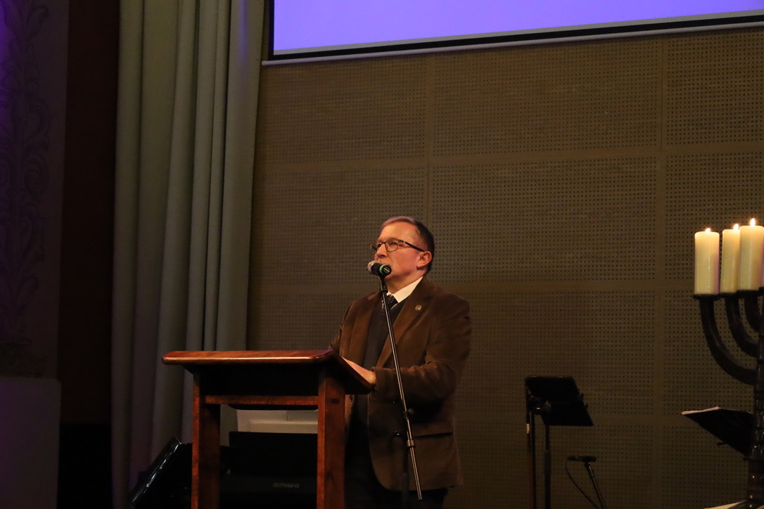 Pierwsza część wydarzenia obejmowała zapalenie świec na menorze i modlitwę, podczas której odczytano fragment Starego Testamentu oraz przytoczono słowa ana Pawła II wygłoszonego w synagodze w Rzymie w 1986 r. Modlitwie przewodniczył biskup kaliski Damian Bryl.