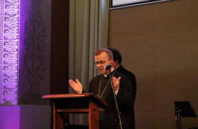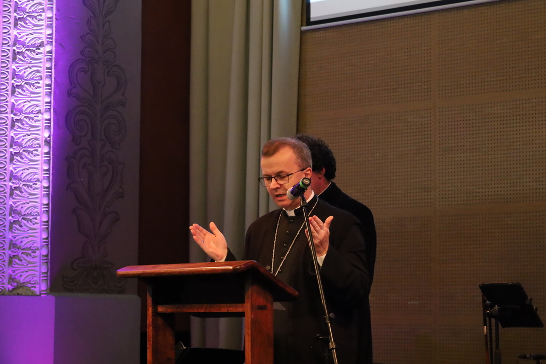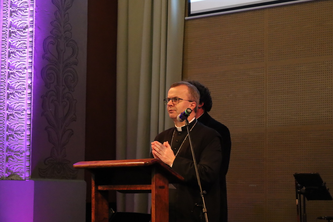 Na zakończenie głos zabrał bp Damian Bryl. W swoim wystąpieniu podziękował za udział w spotkaniu, modlitwę oraz podkreślał jak ważnym jest tworzenie klimatu wspólnoty i dialogu: