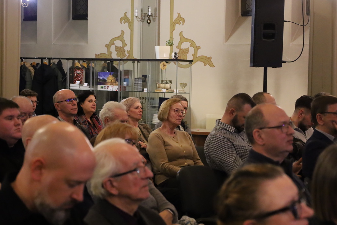 Następnie uczestnicy spotkania mogli wysłuchać prelekcji na temat roli synagogi w judaizmie wygłoszonej przez dra Krzysztofa Mortę. Natomiast p. Jarosław Biernaczyk w wykładzie pt. „Wokół ostrowskiej Synagogi” krótko przedstawił dzieje ostrowskiej gminy żydowskiej.